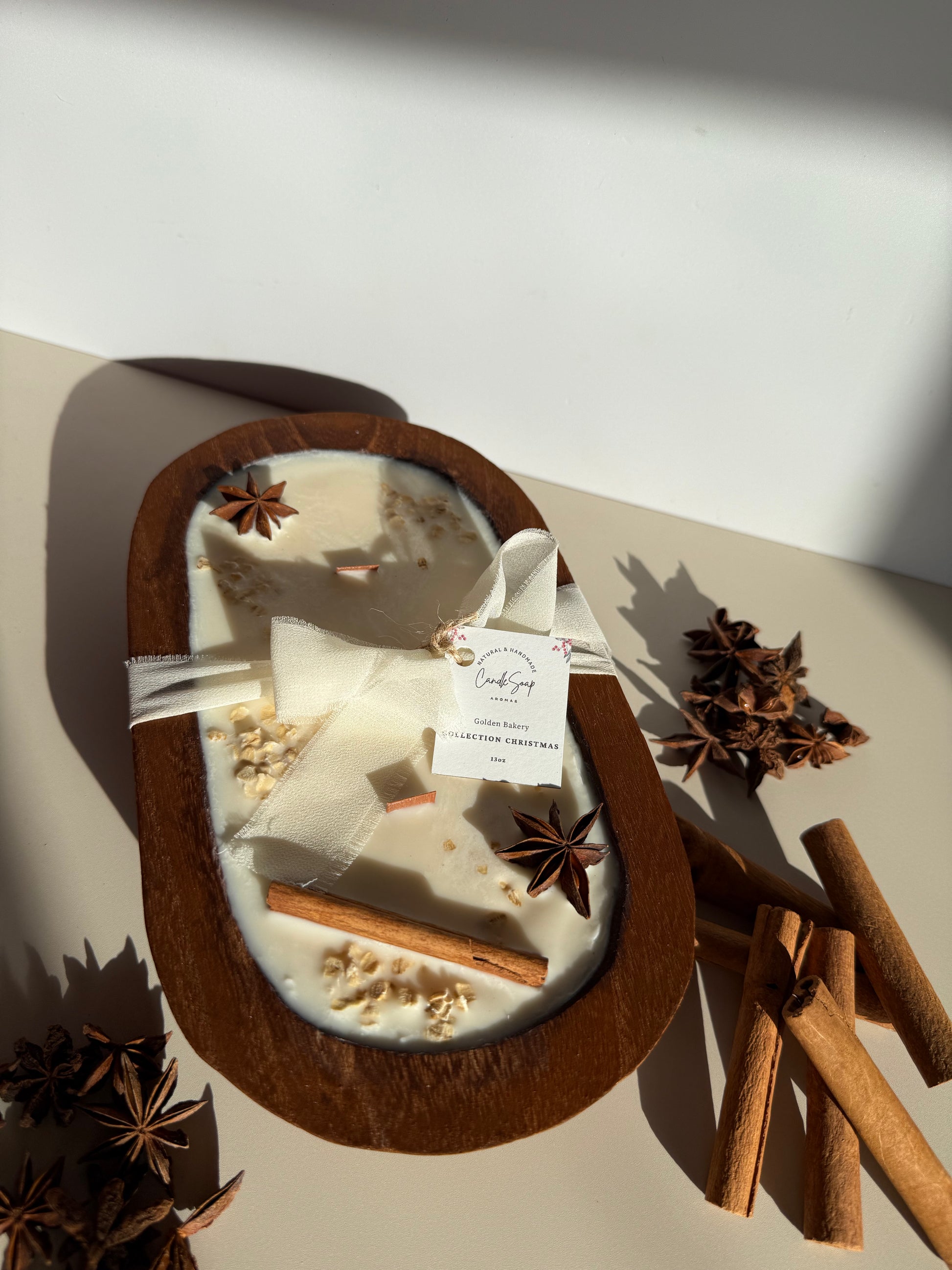 Each “Golden Bakery” candle is made with 100% natural soy wax, poured by hand with care and dedication. Its soft, cozy glow transforms any moment into a magical experience.