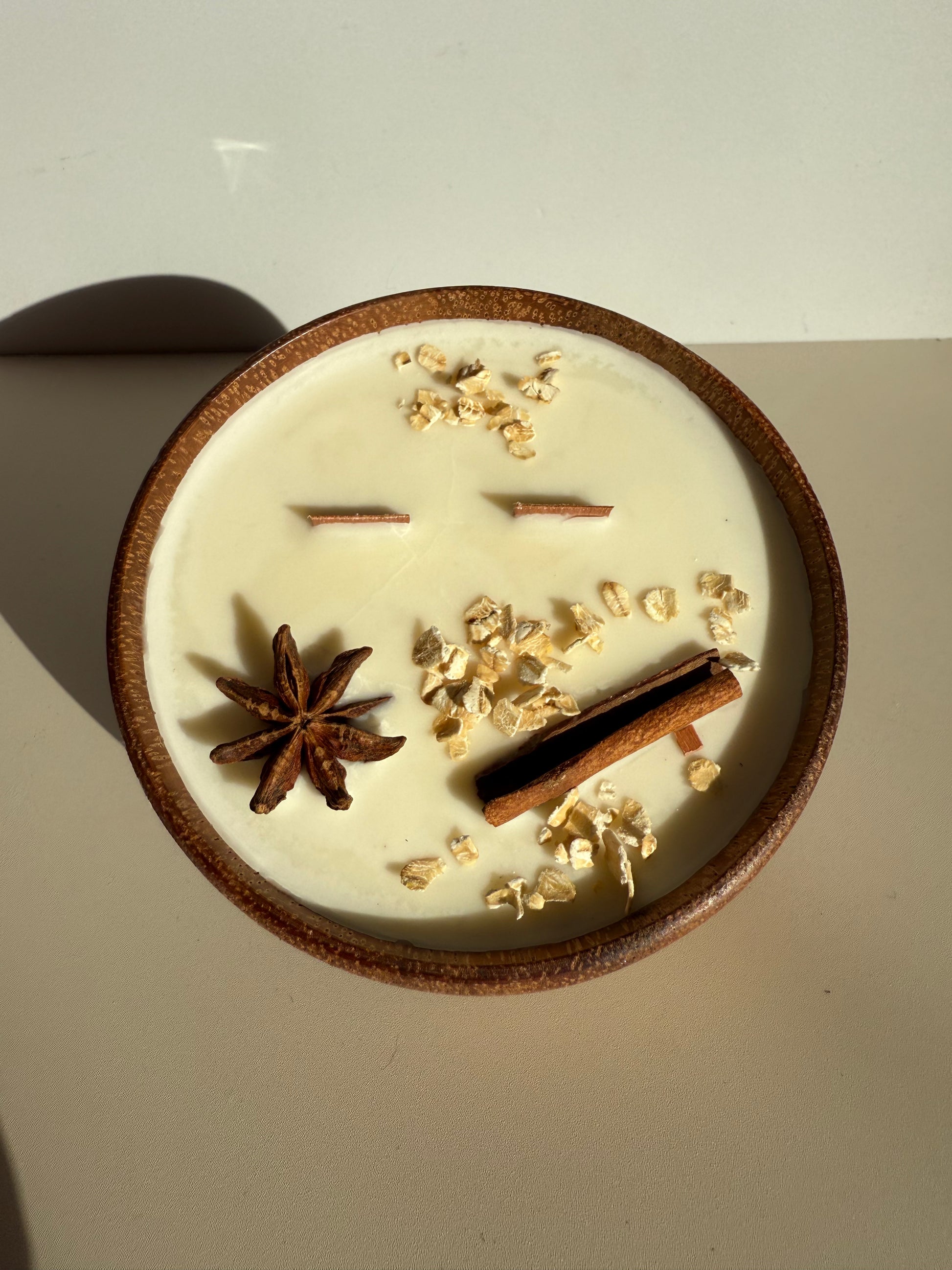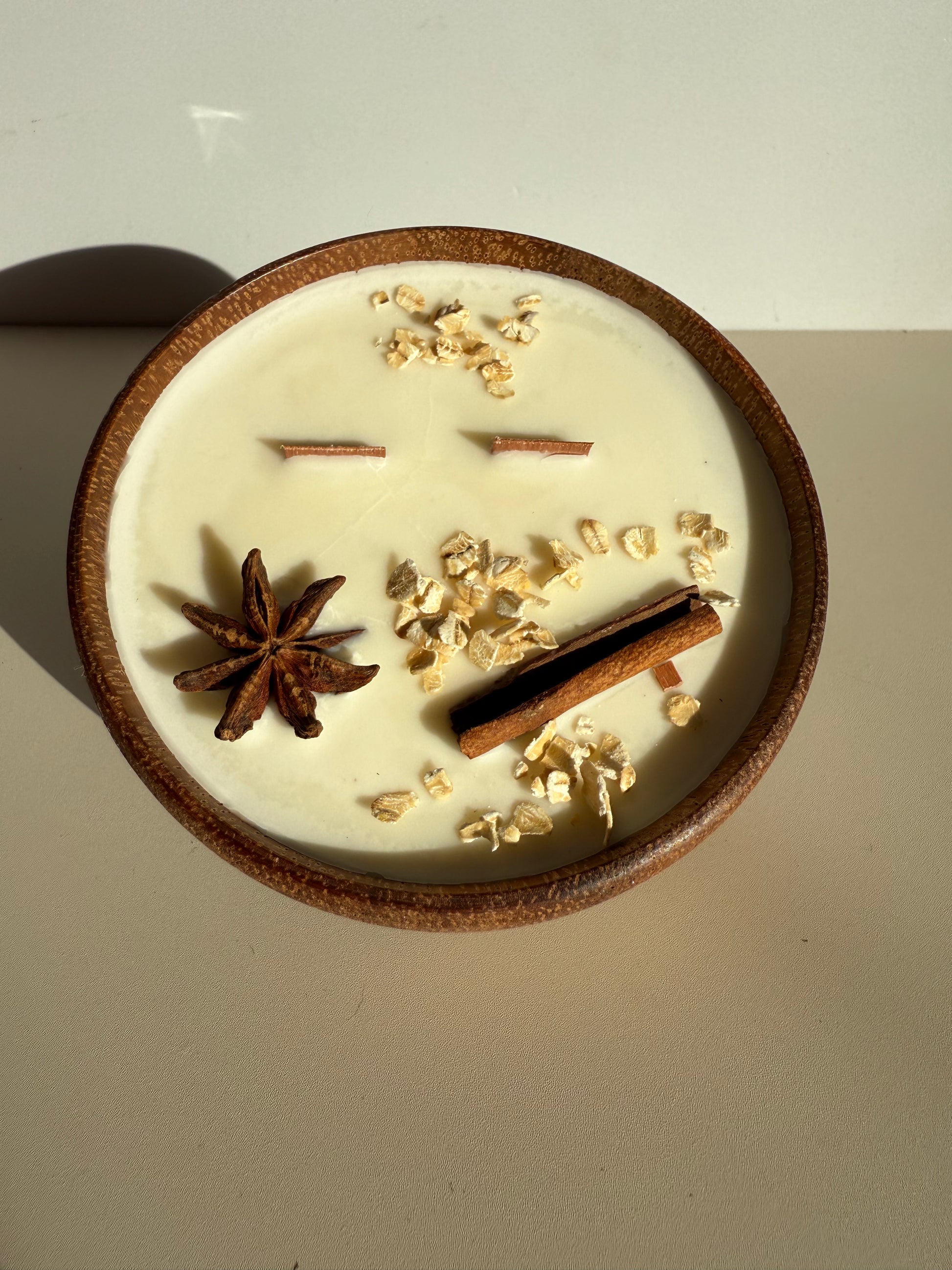Adorned with cinnamon sticks, star anise, and oats, this candle looks as delicious as it smells. Every detail adds warmth, aroma, and a festive touch to your home.