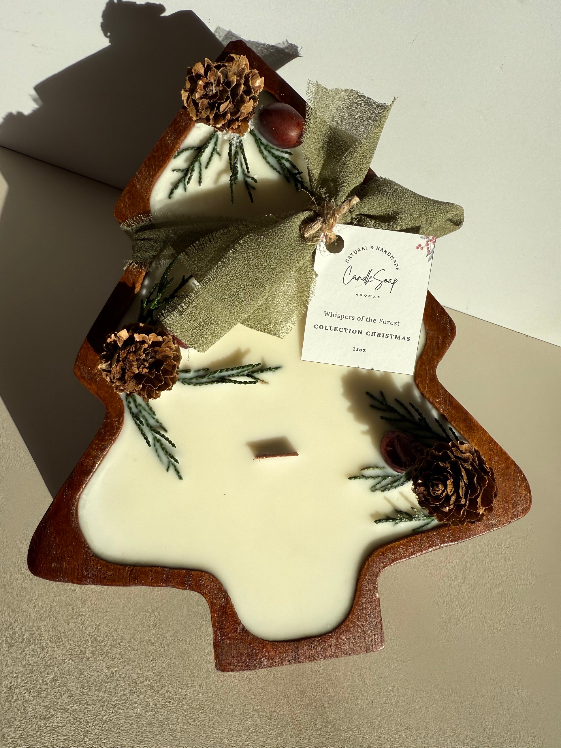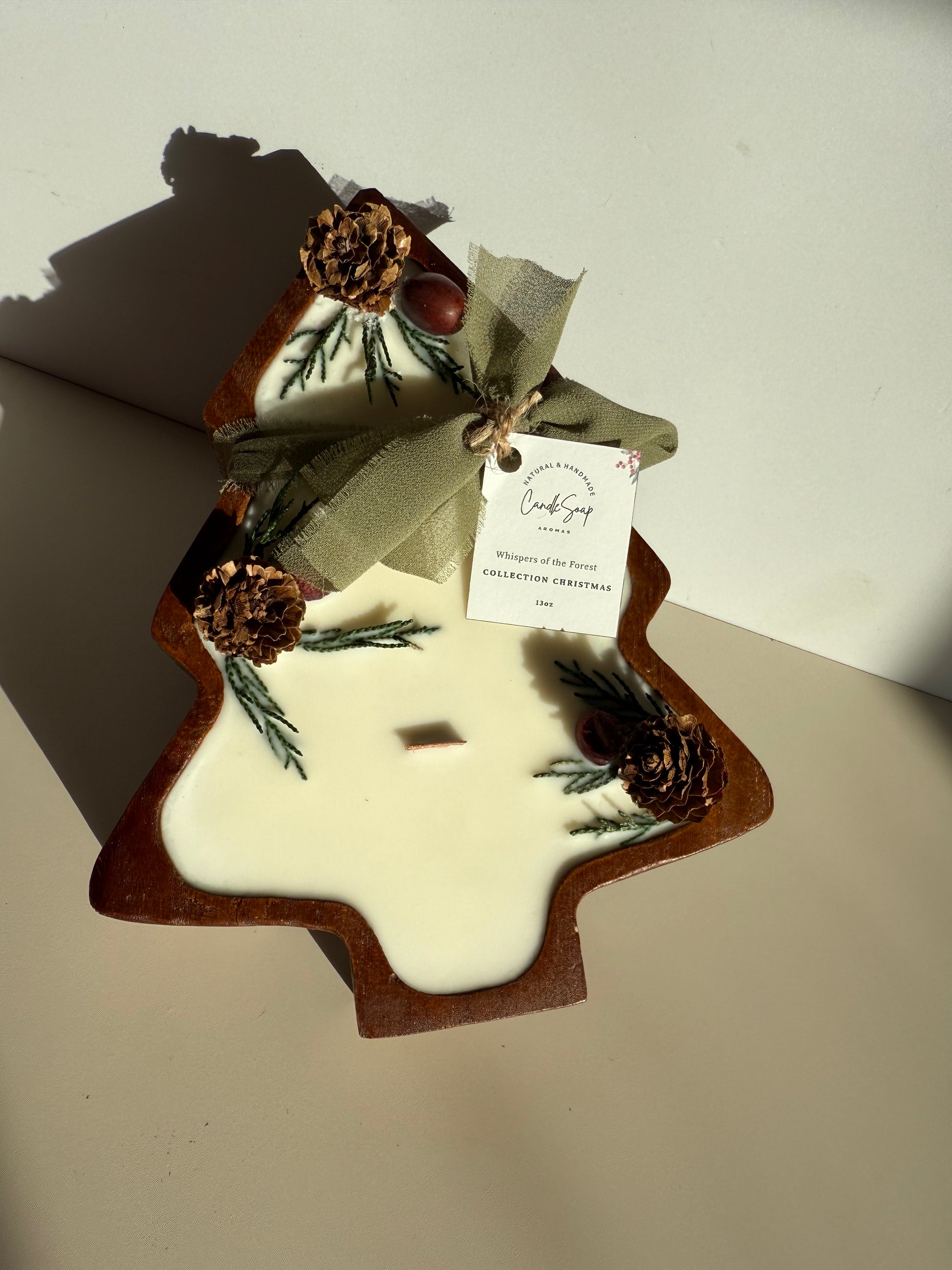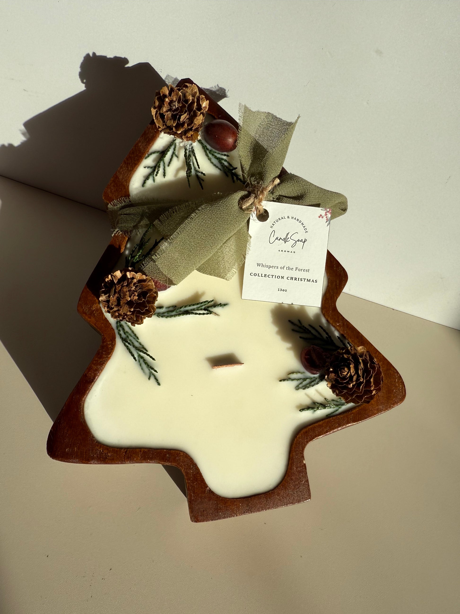 Each candle is adorned with pine cones and natural pine branches, bringing harmony, warmth, and a festive touch to your home. Its design reflects the calm and elegance of winter.